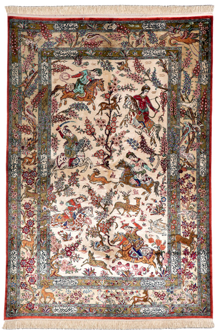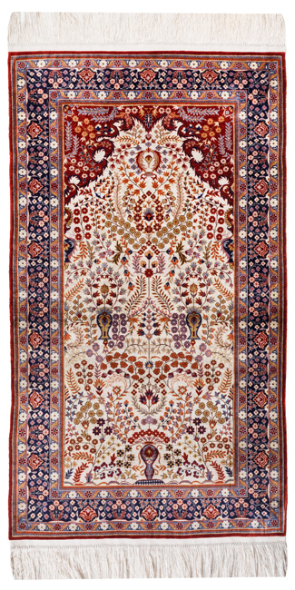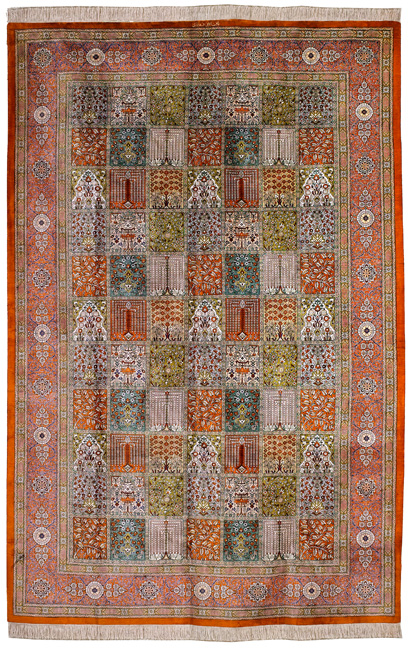 שטיח שהואWOW אחד ענקי, מלכותי, אלגנטי, מלא ברק וזוהר. אחד השטיחים הצפופים והיקרים ביותר בעולם. יצירת אמנות מלאה ביופי, עשויה בעבודת יד שנארגת בעיר קום שבאיראן, ויכולה להגיע לכ- 2 מיליון קשרים למ"ר.